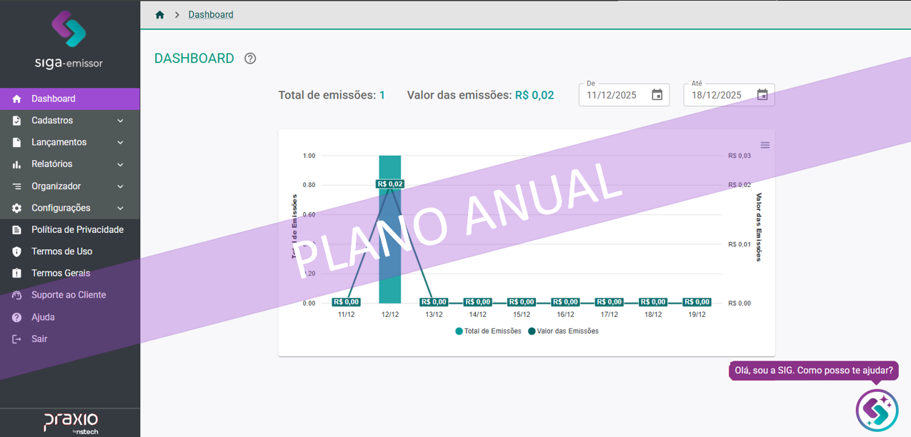 Desenvolvido para facilitar a rotina de quem faz tudo sozinho, o SIGA-EMISSOR organiza as tarefas do dia a dia e elimina os riscos de esquecer prazos importantes ou emitir documentos com erros. Com ele, você controla viagens, motoristas e veículos, gera listas de passageiros para a ANTT e emite CT-e OS com segurança e agilidade. Na contratação da faixa 3, é possível gerar de 1 a 100 emissões por mês, sendo ideal para operações pequenas e regulares.
