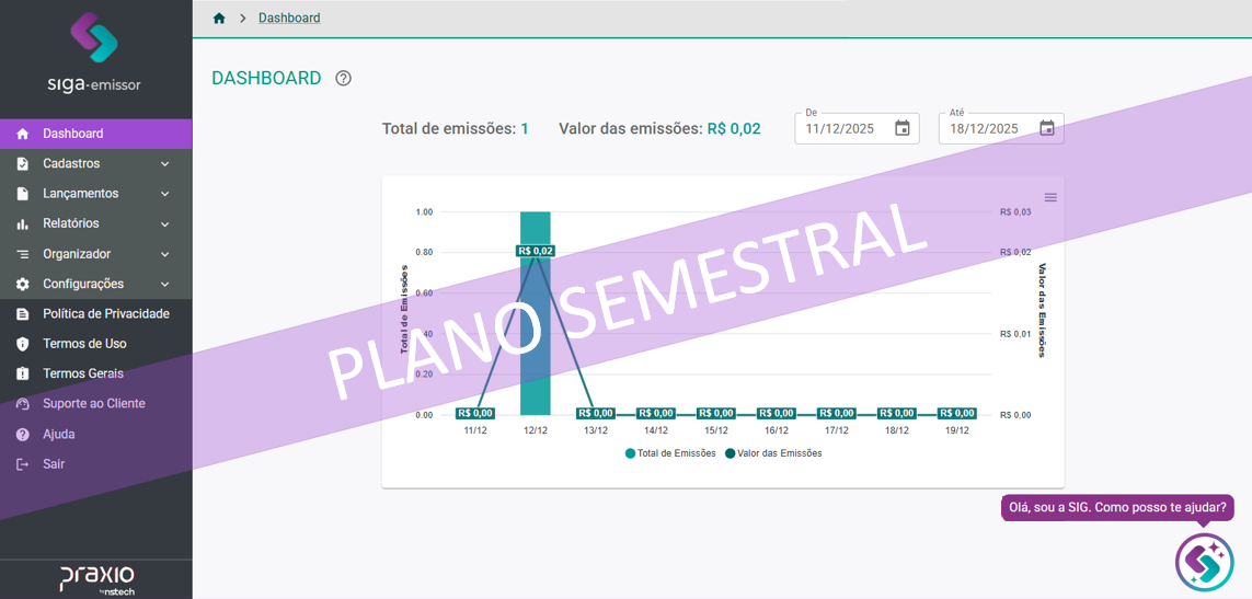 Desenvolvido para facilitar a rotina de quem faz tudo sozinho, o SIGA-EMISSOR organiza as tarefas do dia a dia e elimina os riscos de esquecer prazos importantes ou emitir documentos com erros. Com ele, você controla viagens, motoristas e veículos, gera listas de passageiros para a ANTT e emite CT-e OS com segurança e agilidade. Na contratação da faixa 4, é possível gerar de 1 a 300 emissões por mês, sendo ideal para economia por volume.